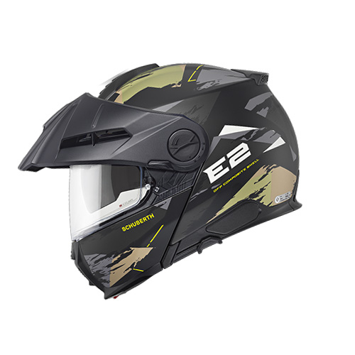 The SCHUBERTH E2 is the second generation of SCHUBERTH's adventure helmets and the second helmet of SCHUBERTH's range featuring the P/J double homologation and meeting the new ECE 22.06 standard. The SCHUBERTH E2 is the perfect mix between the comfort of the famous "C" series and the aggressive look and feel of an offroad helmet. The new E2 also integrates all the latest SCHUBERTH standards in terms of safety, aerodynamics and aeroacoustics performance.